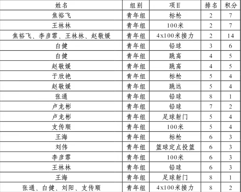 本次运动会上,学院共有45名运动员参加了42个项目的角逐。他们在赛场上发扬团结、拼搏的精神,向更高、更快、更强的目标迈进,最终不负众望,斩获了171分的骄人成绩,展现了我院教职工自信自强的精神风貌!下一步,学院将继续丰富体育文化生活,不断增强广大教职工的身体素质和幸福感!