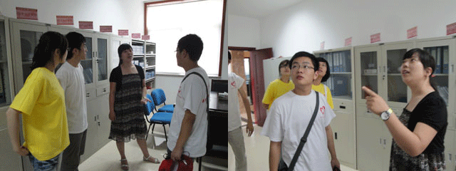 志愿者们通过社区志愿工作负责人周麟的讲解了解到舜园居委会各个主要部门及各部门的职能,并在她的带领下参观了舜园居委会办公楼的各个办公区,以及居民档案陈列室、老年活动室等。随后,志愿者们以咨询工作人员和查阅资料的形式就全市主要社区的发展现状及前景展开深入调查。他们还通过联络社区居民、统计近几年的相关数据了解到舜园社区人口、经济、环境各个方面发展状况的详细信息,并就调查结果与社区工作人员进行交流沟通。