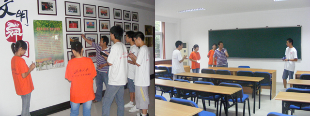 19日上午,在社区相关负责人的带领下,实践队全体队员来到科普大学参观。首先,实践队队员们参观了社区大学文化长廊,结合负责人的详细介绍,队员们对社区大学的指导精神及成长历程有了初步了解,并感受到了社区大学浓厚的文化底蕴与文化内涵。之后,队员们又与负责人一同参观了社区大学的教室,对社区大学有了更进一步的了解。