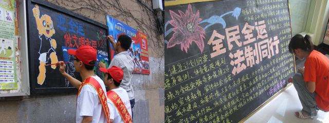 ——城市发展学院暑期社会实践服务队帮助社区办“迎全运做文明市民”板报