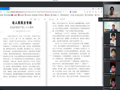 为全面贯彻落实习总书记要求青年人学党史、牢记党史的重要讲话精神,suncitygroup太阳新城“青年党史研学社”社会实践团于7月24日晚以线上腾讯会议的方式开展了毛泽东选集(节选)的研学活动。