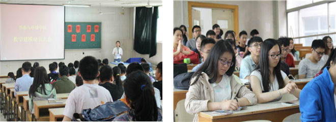 大会伊始,主持人首先介绍了济南大学历年数学建模的比赛情况并普及了数学建模的相关知识,让同学们认识到数学作为一门基础学科对学习能力提高的重要性。随后,大会请到了获得山东省数学建模比赛二等奖的刘华宇和同学们进行交流,她根据以往建模比赛培训的经历,悉心地给予同学们意见,并鼓励大家积极参加,进一步培养对数学建模的兴趣,她指出我校数学建模大赛机制已相对成熟,并大力提倡跨院合作,达到最优配合,希望同学们尽可能在数学建模模拟培训中感受到团队合作的重要性,增强责任感,充分锻炼自身的综合能力。最后,科创服务中心主任对本次大会做出了总结,资源与环境学院数学建模动员大会顺利结束。